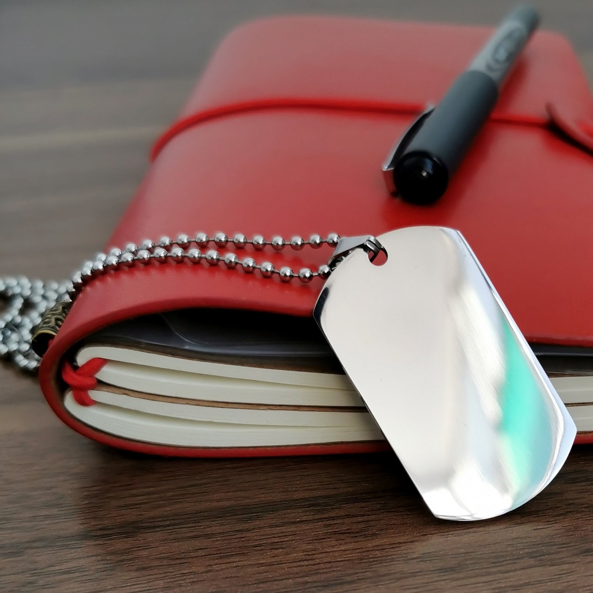 Product Dimensions: Weight = 16.4g; Dog tag 48mm x 28mm; Luxury Military Necklace: 24" (61cm) with upgraded clasp