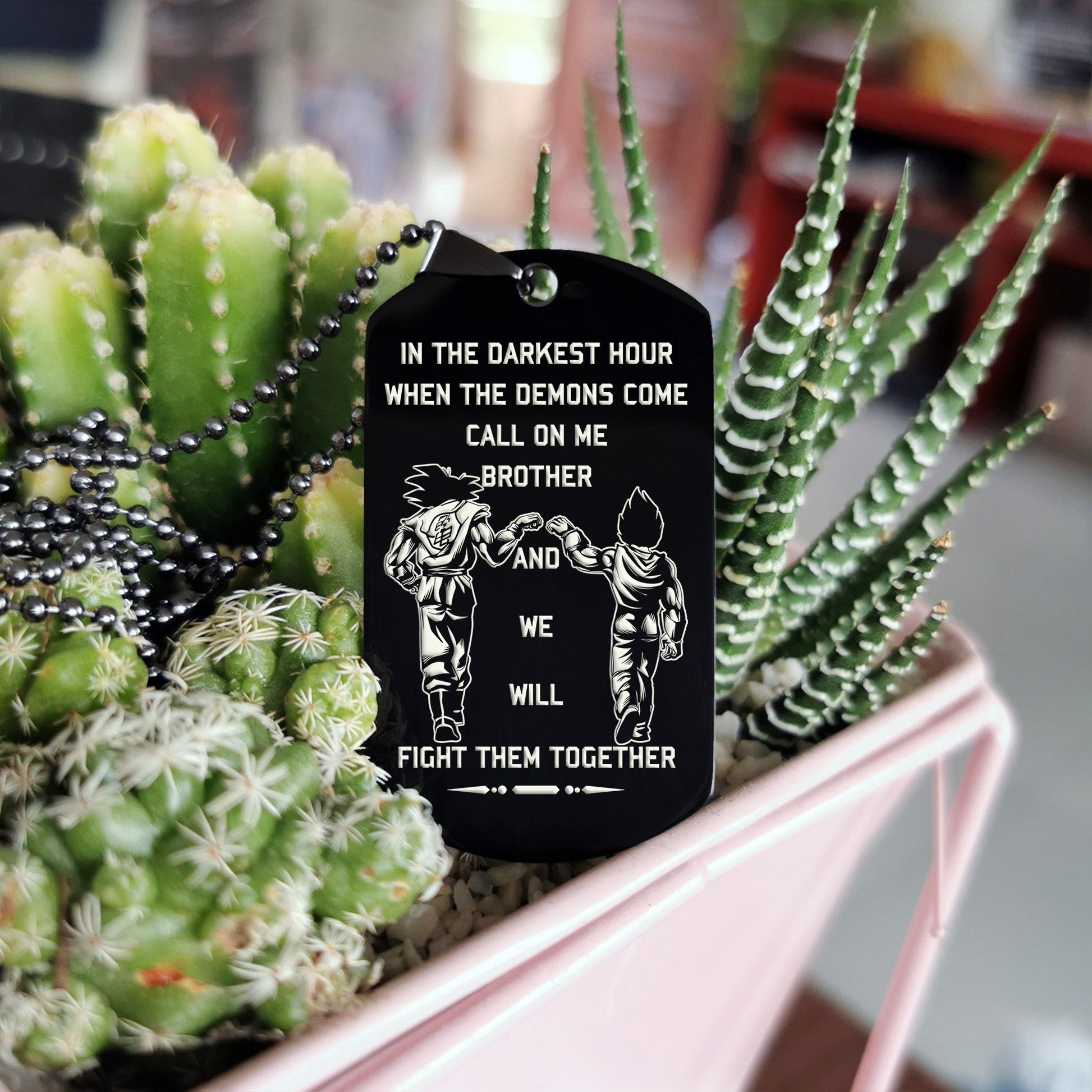 DRD007 - Call On Me Brother - English - Goku - Vegeta - Dragon Ball - Engrave Black Dog Tag